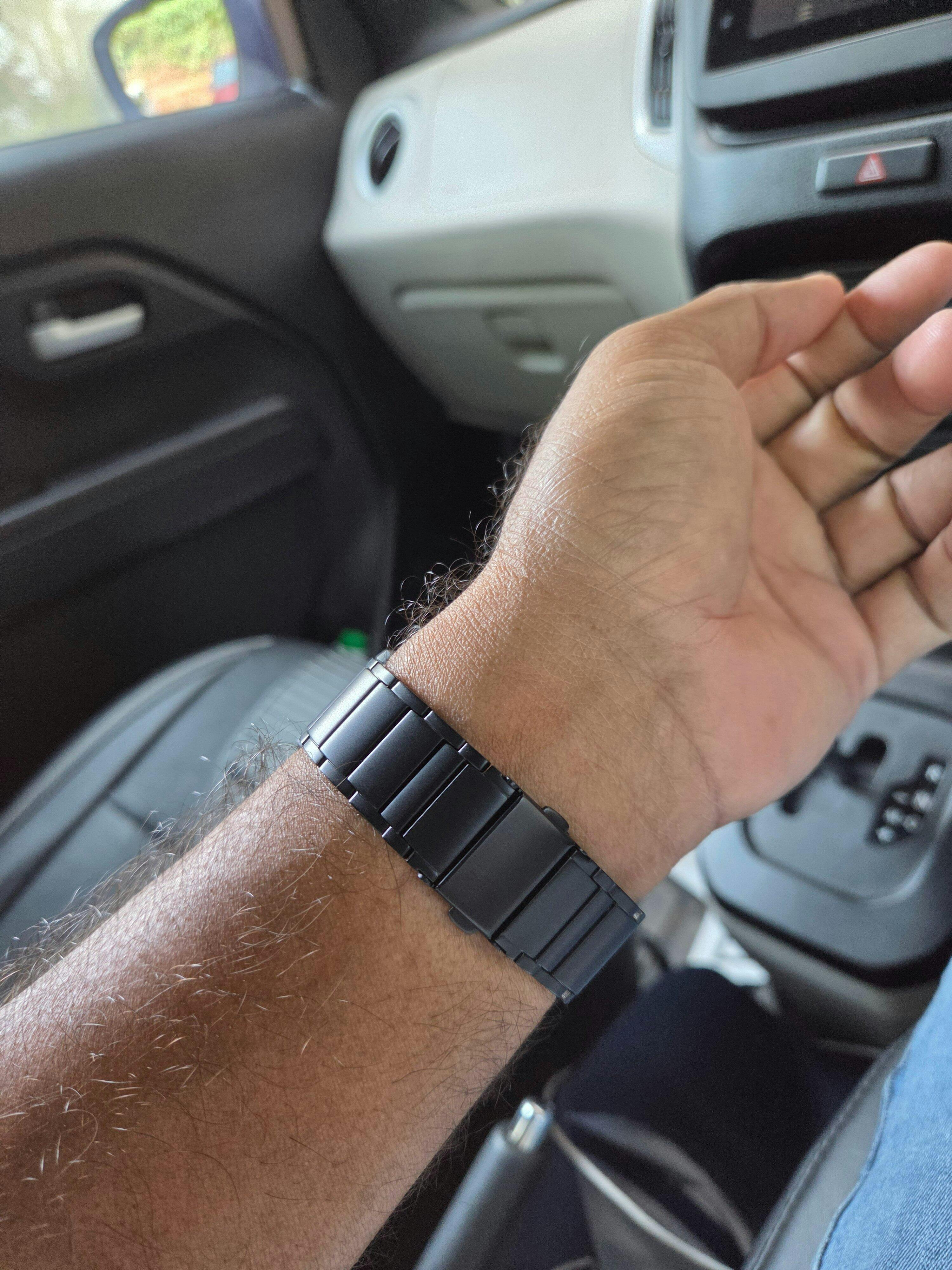- Titanium links and buckle: this band takes advantage of the natural properties of titanium, offering a smooth and lightweight structure